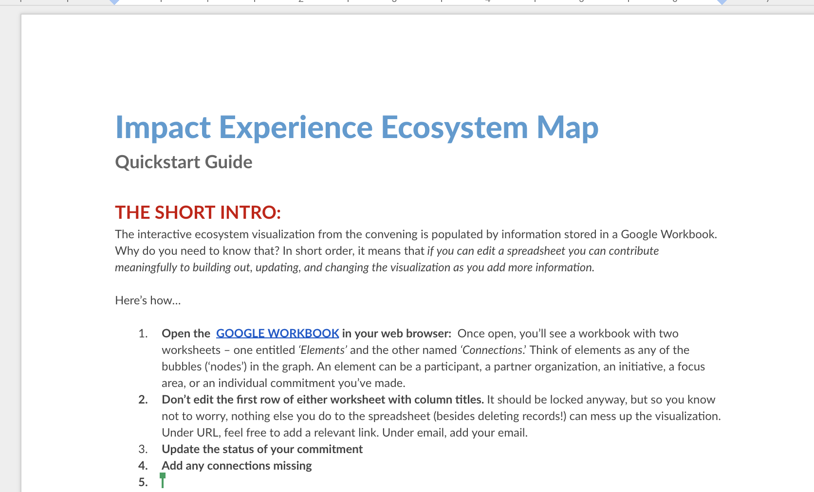 The goal of this system map is to attempt to organize into a coherent mental models the commitments and connections made during Impact Experience's Puerto Rico convening.